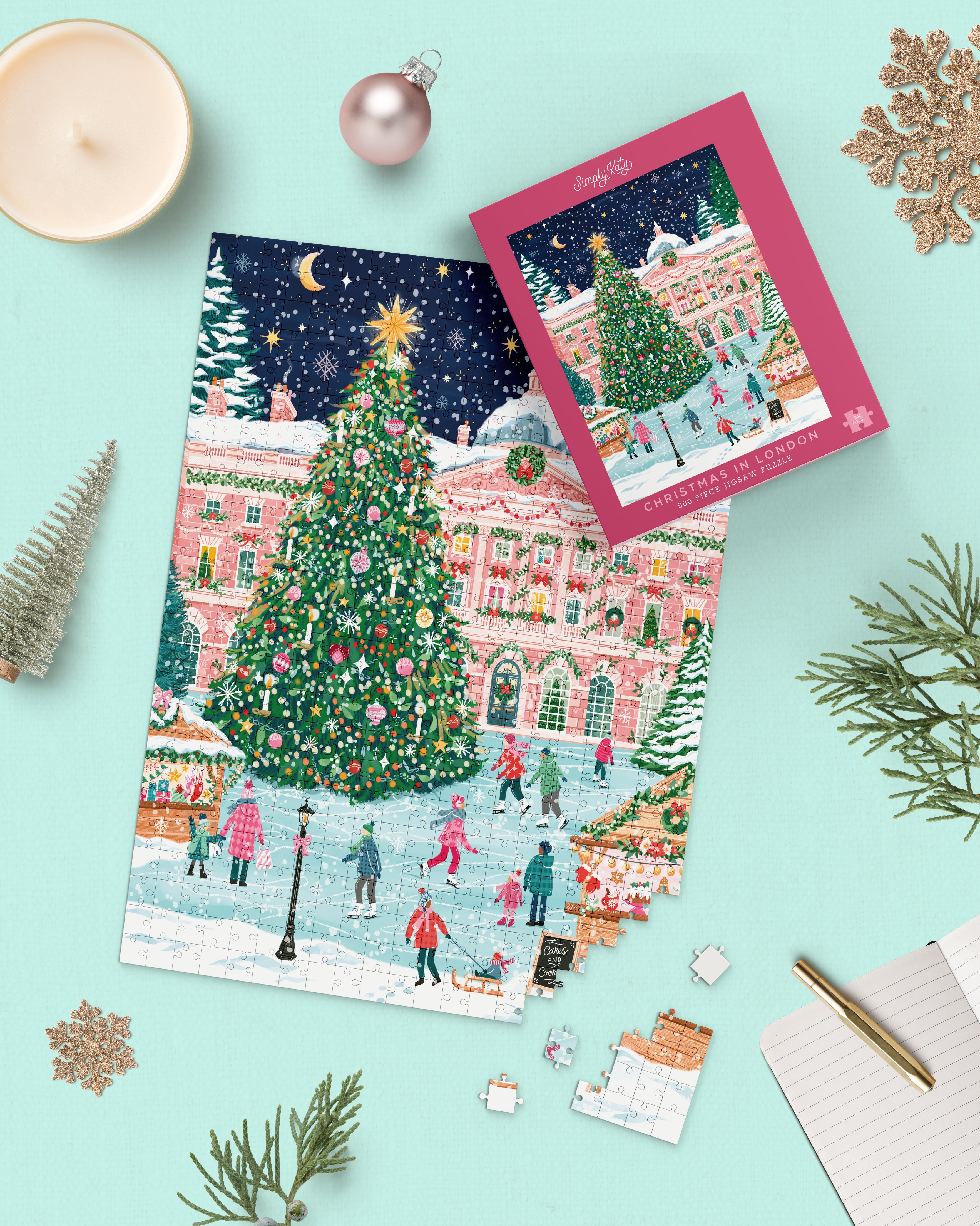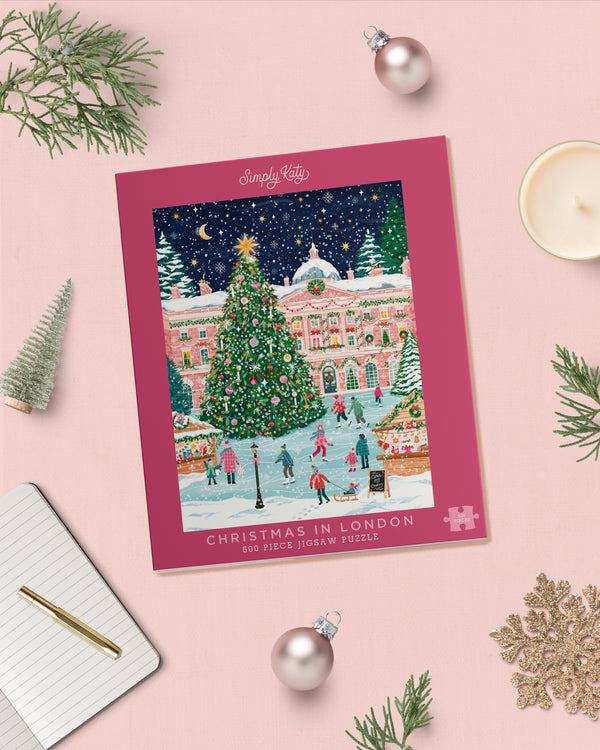 Bring a touch of festive charm to your home with our Christmas in London 500 Piece Jigsaw Puzzle, illustrated by Simply, Katy. This enchanting winter scene captures the joy of the season — with skaters gliding around a grand Christmas tree, twinkling lights, and the elegant architecture of London in the background. A cozy and creative way to unwind during the holidays, this puzzle makes a perfect gift or a beautiful keepsake to enjoy year after year.